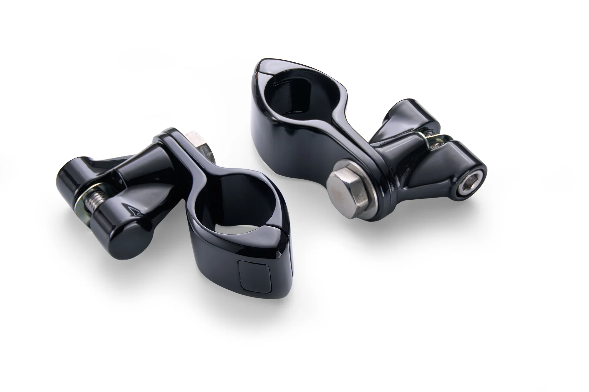 Ciro® engine guard highway peg mounting kits are the modern solution for motorcycles equipped with 1-1/4" engine guards. Our patented pinless design is the strongest and most elegant solution of any engine guard mounting clamp in the motorcycle market today. The ratcheting footpeg clevis is far superior to the "D" spring technology of days gone by, but if you need to use your "D" spring it still works. Will not work with Harley-Davidson chopped engine guards. Not recommended for motorcycles with lower fairings (see FAQ).